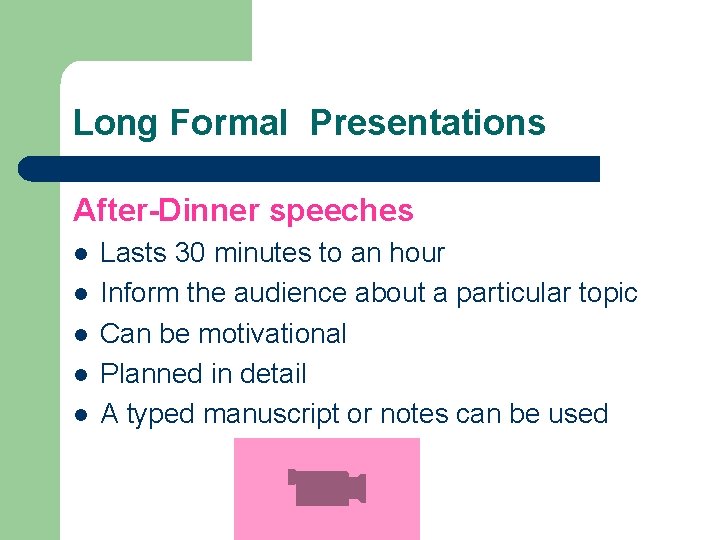 The Guidelines for Effectively Presenting an After-dinner Speech Include